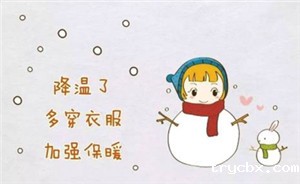 2.衣服要穿暖,及时帮助孩子增添适量的衣服;鞋子要防滑,防水。
