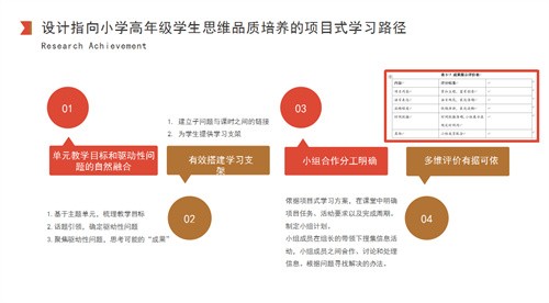 luck官网龙萍老师对区规划课题《指向思维品质培养的小学高年级英语项目式学习的实践研究》进行了中期汇报。龙老师阐述了课题的缘起、研究进展、研究中存在的困难与问题以及下阶段研究计划,并梳理了设计指向小学高年级学生思维品质培养的项目式学习路径