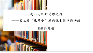 好风凭借力,扬帆正当时。每一次相遇都是一次专业提升,每一次分享都是一次智慧凝聚,每一次研修都期待着教师的蜕变。本次“慧师堂”科研共同体主题研修活动,提升了教师的写作信心,教会了教师写作的基本技能和方法,必将在一定程度上促进教师写作提升和专业成长。