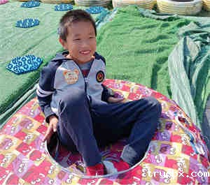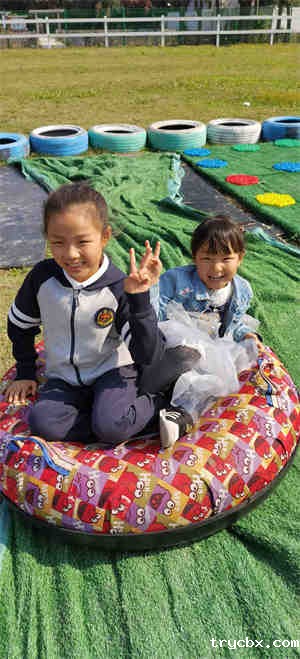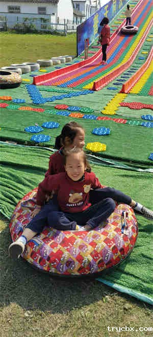 唯美的粉色沙滩、彩虹滑道,让原本的疲倦消失得无影无踪,小妹妹不敢一个人滑下来,由哥哥、姐姐来保护,在滑了几次后小朋友们发现两人乘坐同一个轮胎更加刺激,马上自由组队,沉浸在无尽的欢乐中。