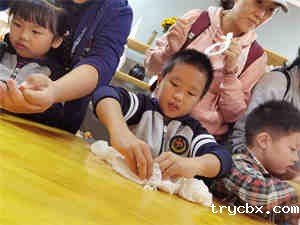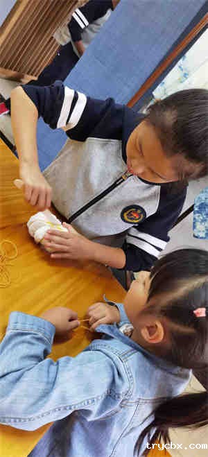 听完了老师的讲解,小朋友们迫不及待得拿起手中的围巾开始了属于自己的创作。