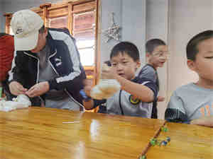 有的同学用冰棒棍,有的同学用弹珠,有的同学用网兜,还有的同学各种工具齐上阵,俨然每个人都成了一名小设计师。