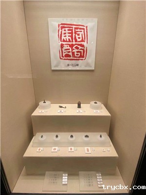 韩天衡美术馆中有专门关于篆刻的展览柜,其中摆放着一块块美石,而最让人敬佩的是石头底下的撰文,笔画清瘦高挑,不拖泥带水,透露出简雅之美。