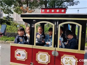 “滴滴……”循声望去原来司机叔叔开着小火车来接我们了,小朋友们排队上车,开启短暂的庄园旅程。15分钟后,抵达了我们的目的地——露营区。