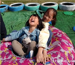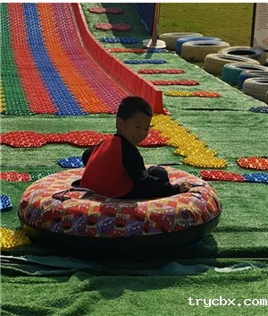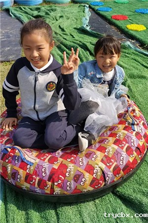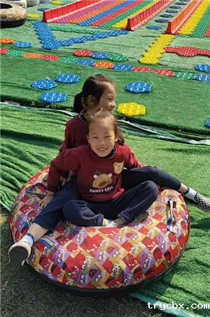 唯美的粉色沙滩、彩虹滑道,让原本的疲倦消失得无影无踪,小妹妹不敢一个人滑下来,由哥哥、姐姐来保护,在滑了几次后小朋友们发现两人乘坐同一个轮胎更加刺激,马上自由组队,沉浸在无尽的欢乐中。